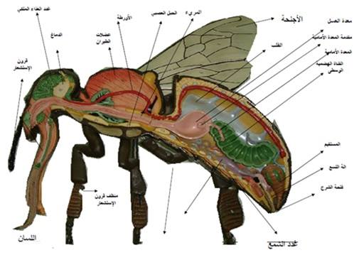 First, let us read the verses in full without cutting to understand: Surah An-Nahl 66: And indeed, for you in the livestock is a lesson. We give you drink from what is in their bellies - between excrement and blood - pure milk, palatable to drinkers. And from the fruits of the palm trees and grapevines you take intoxicant and good provision. Indeed in that is a sign for a people who reason. And your Lord inspired the bee, saying: Take for yourself houses in the mountains and in the trees and in what they construct. Then eat from all the fruits and follow the ways of your Lord made easy for you. There emerges from their bellies a drink of varying colors wherein is healing for people. Indeed in that is a sign for a people who give thought . ـــــ ـــــ 1.. What do we learn from these clear verses?? We learn that camels and goats produce pure milk from their bellies. So does milk come from the stomachs of goats, cows or camels?? Of course, it comes out of her breasts or reproductive organs, but it is formed in their stomachs, and when it comes out , it goes through the stomach stage, then finally comes out of the urinary tract or the breast. Another example: The Almighty said: And Allah brought you forth from the wombs of your mothers, not knowing a thing, and He gave you hearing and sight and hearts that you might give thanks. [p. 137] When we say about a newborn child that he came down from “his mother’s womb,” did he come out of his mother’s womb or from her vagina? Of course, from her vagina, but originally it was formed in the stomach, and after the components of the fetus were formed and completed, it came out of the vagina. The same is true for bees, honey is formed in the body of the bee, then very small pieces come out. These very small pieces, when many bees place them, produce honey , but the origin of this excretion from the worker bee is her stomach, as she feeds on a part of the fruits, which is its nectar, then this food travels in her stomach, then comes out in the form of feces from her mouth because she does not have a reproductive organ. ـــــ 2.. Now: What are the components of the bee’s body? Is honey in her stomach or not? The honey stomach is located in the stomach. The American doctor Herman says in his research published in Times magazine that honey bees consist of nectar in the stomach within a special stomach called the honey stomach wikipedia Wikipedia the free encyclopedia The body of the bee is divided into three parts (head, chest, and abdomen), the bee has 5 eyes and now from an American scientific site : Anatomy of the bee's body: From another American scientific anatomical site talking about the honey stomach