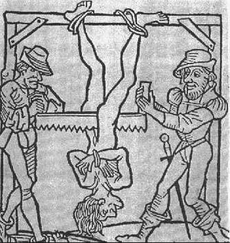 An illustrative image of the sawing carried out by the Crusaders against the Muslims of Andalusia, which is based on such texts.